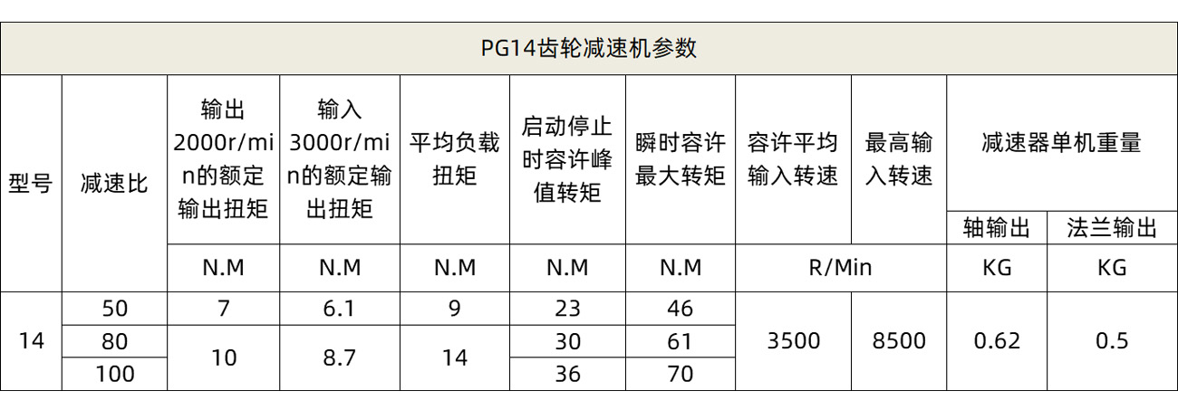 谐波齿轮箱PG 14-50/80/100